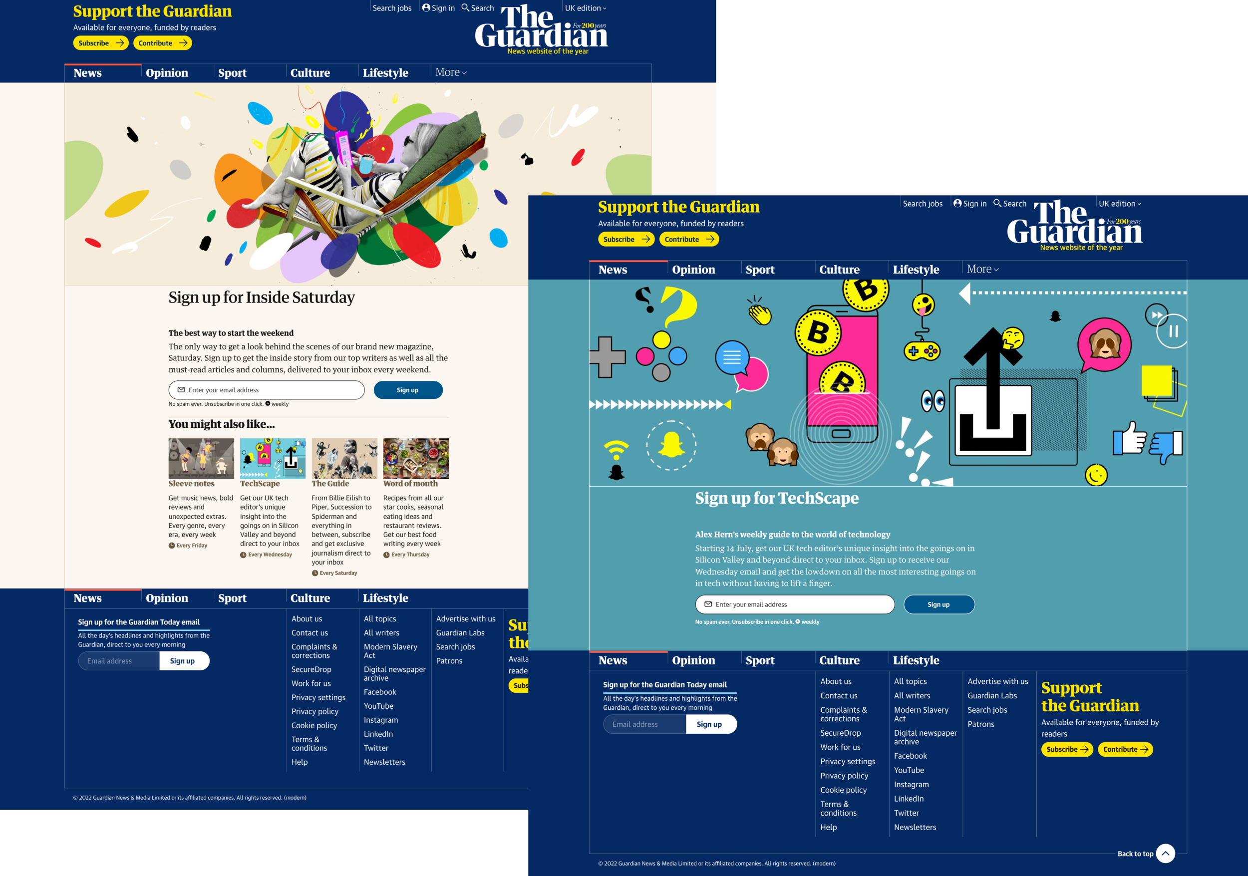 In September 2021, I was tasked with designing and coding the sign-up pages for our latest two newsletter launches, Inside Saturday and The Guide.