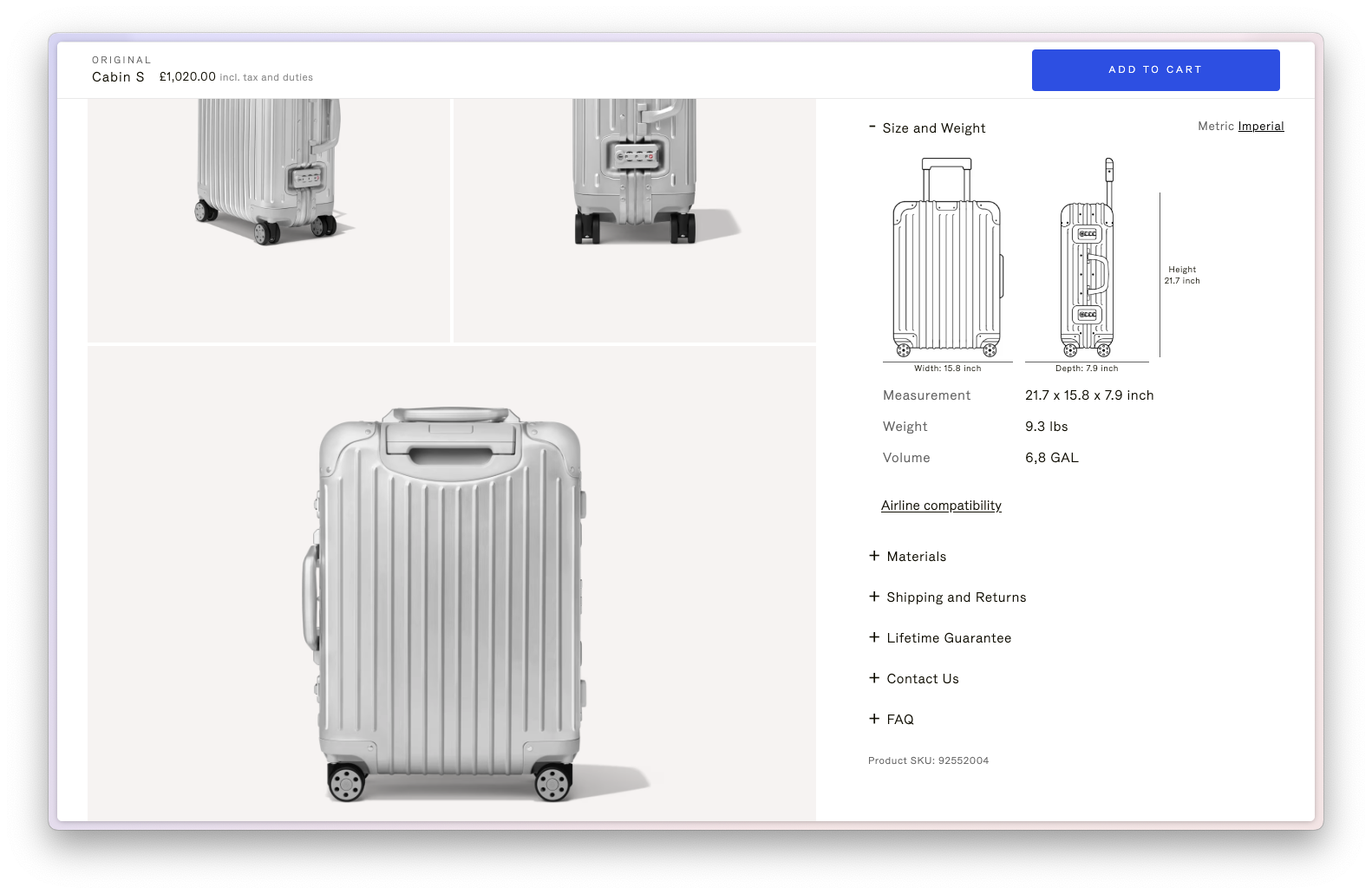 As part of their website update in 2018, Rimowa wanted to add graphics to each suitcase’s page. This enables users to view the product’s measurements more easily.